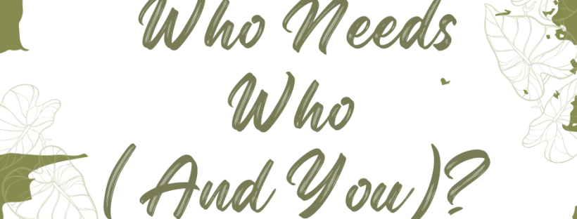 Dear Friend of Mine Who is a Woman, People need you. Like you didn’t already know this, right!?! You are probably feeling the strain of your life’s demands (and that includes people) right now in this moment in one way or another. Whether you’re raising a family, working full time, running a homestead or your … Continue reading Who Needs Who (And You)?